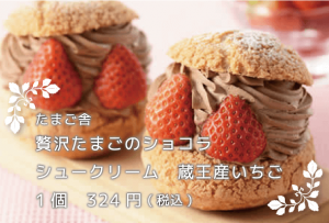 たまご舎_贅沢たまごのショコラシュークリーム_蔵王産いちご_1個324円