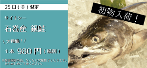 初物入荷!3:25(金)限定_サイキシー_石巻産銀鮭_大特価1本980円