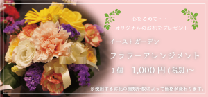 心をこめてオリジナルのお花をプレゼント_イーストガーデン_フラワーアレンジメント_1個1000円〜