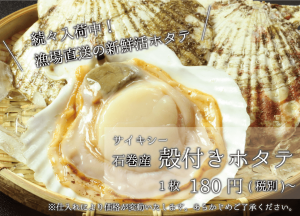 サイキシー_続々入荷中!漁場直送の新鮮活ホタテ_殻付きホタテ_1枚180円〜_sp