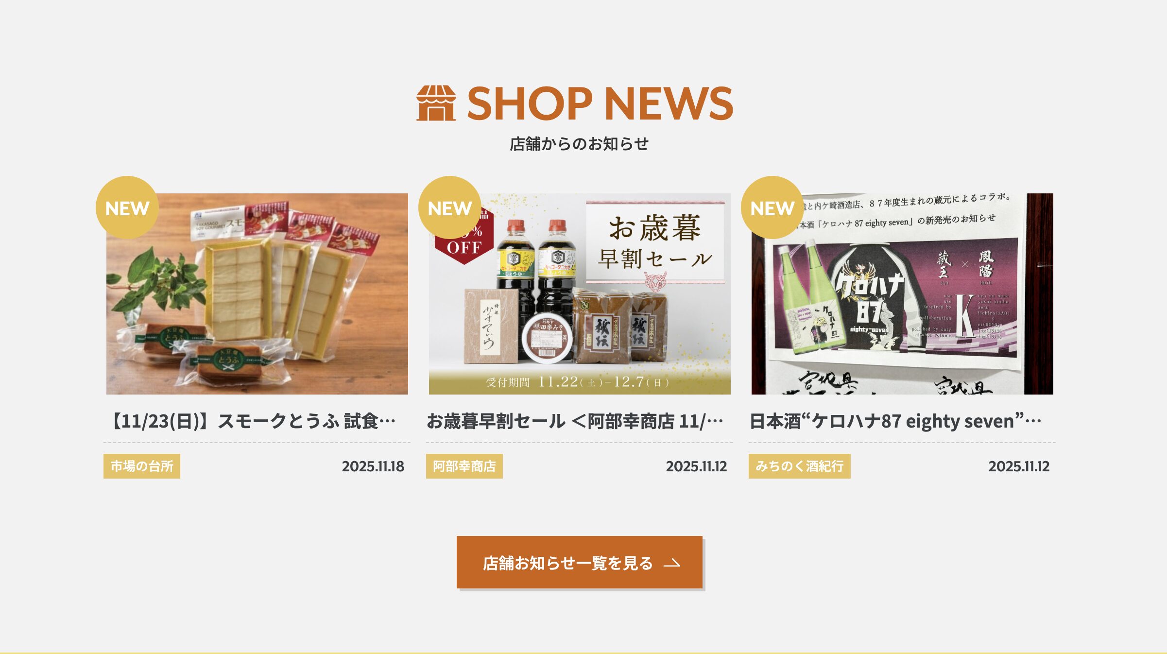 今回のリニューアルでは、各店舗からのお知らせを新たに掲載できるようになり、最新情報をよりタイムリーにお届けできるようになりました。