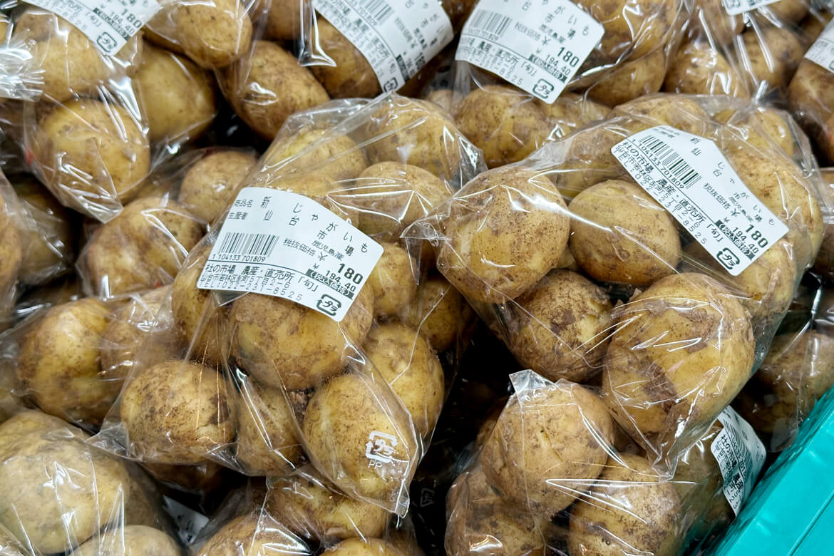 コンパクトなサイズの新じゃがは、しっかり洗ってそのまま皮ごと炒めてお楽しみいただけますよ〜^^