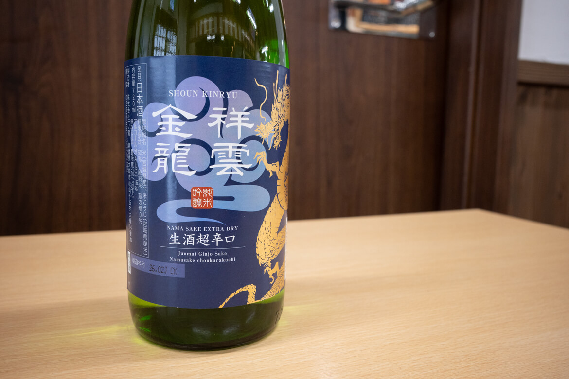 ・祥雲金龍 純米吟醸生酒 超辛口(宮城県栗原市 金龍蔵)・・・720ml 1,980円(税込)