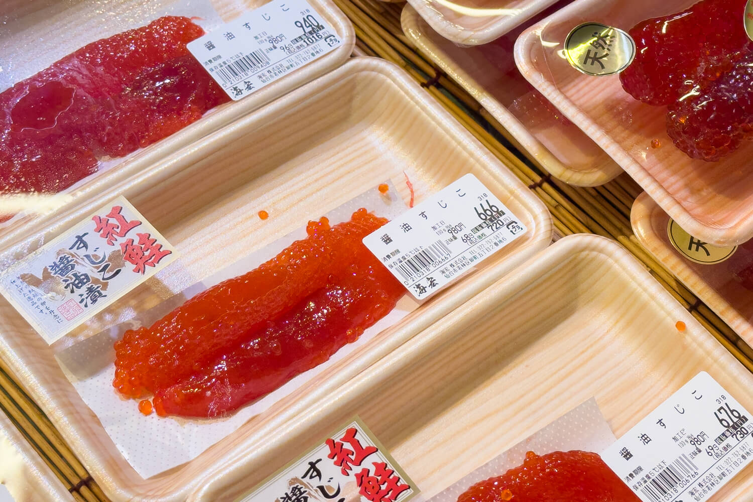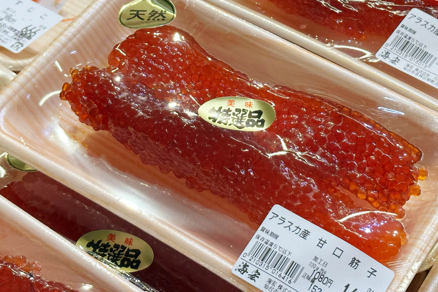 ここで今、多くのお客様が足を止める大人気の商品が、キラキラと宝石のように輝く“すじこ”です!
