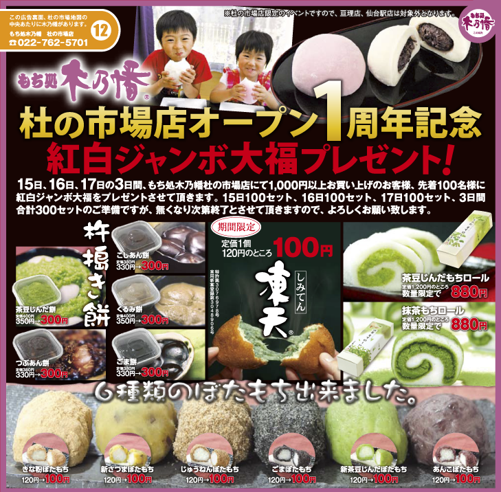 ■もち処木乃幡1周年記念!「紅白ジャンボ大福プレゼント!」