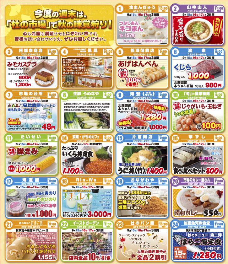 9月15、16、17日の3日間、もち処木乃幡・杜の市場店にて、