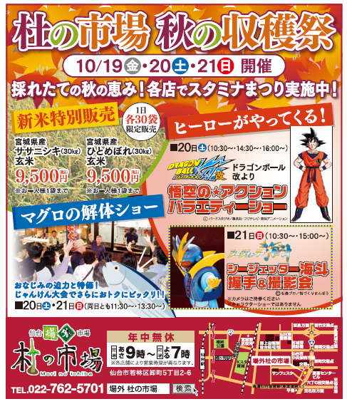 10月19日(金)~10月21日(日)、杜の市場では秋の収穫祭を開催いたします。