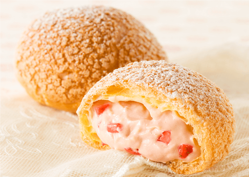 いちご生クリームと生のいちごが入った見た目もかわいらしいシュークリーム。