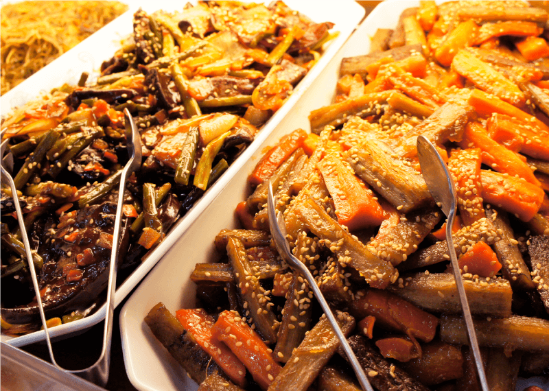日替わりの約20種類のお惣菜をバイキング形式で選び放題!
