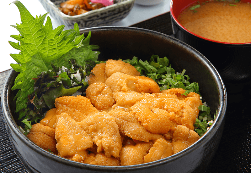 片倉商店の看板商品「生うに丼」は、社長が自ら海に潜り、収穫・厳選したもののみを使用しています。