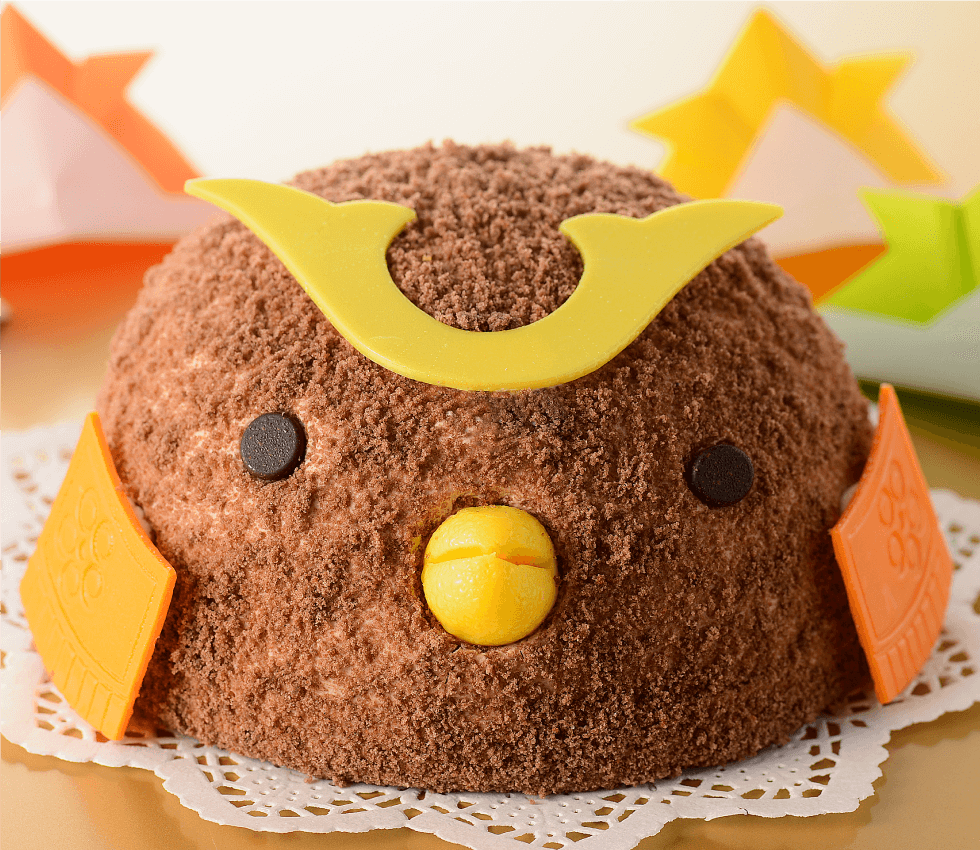 こどもの日限定の、兜を装着したぴよちゃんケーキが登場!!