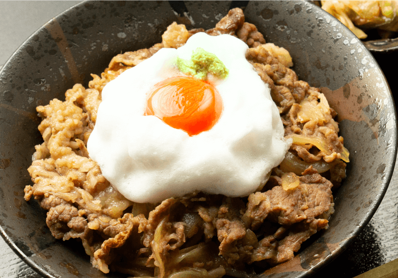 さらにオススメなのは、+50円で追加できる玉子トッピング。フワフッワのメレンゲと濃厚な卵黄が甘辛いお肉と絡めば、間違いなしの美味しさ!