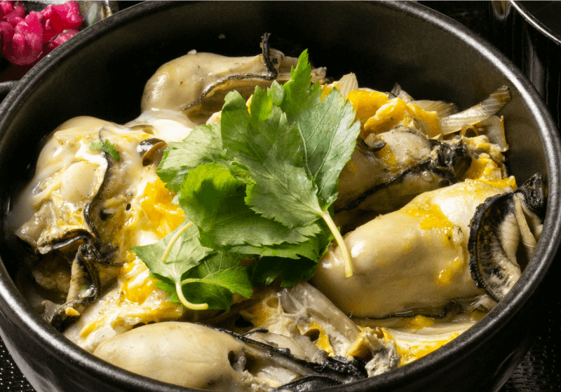 寒くなりグッと旨味甘み増し、ふっくらとした牡蠣とたまごのコンビネーションはまさに絶品。