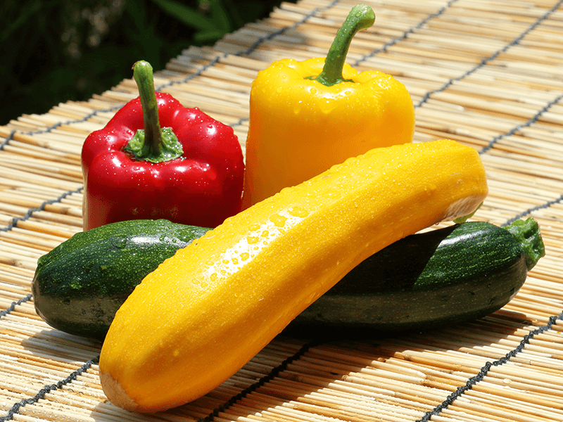 赤・緑・黄色の新鮮夏野菜が色鮮やかに初夏を感じさせてくれます。
