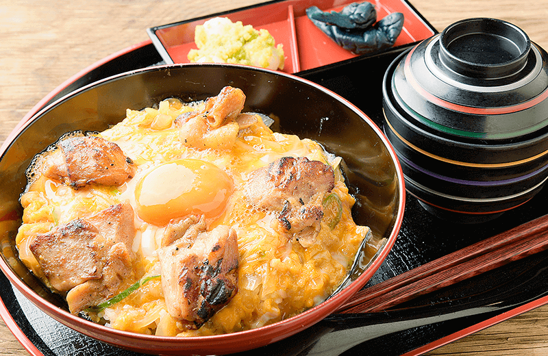 炭火焼の香ばしい鶏肉と、新鮮な蔵王の産みたて卵の相性の良さをお楽しみください。