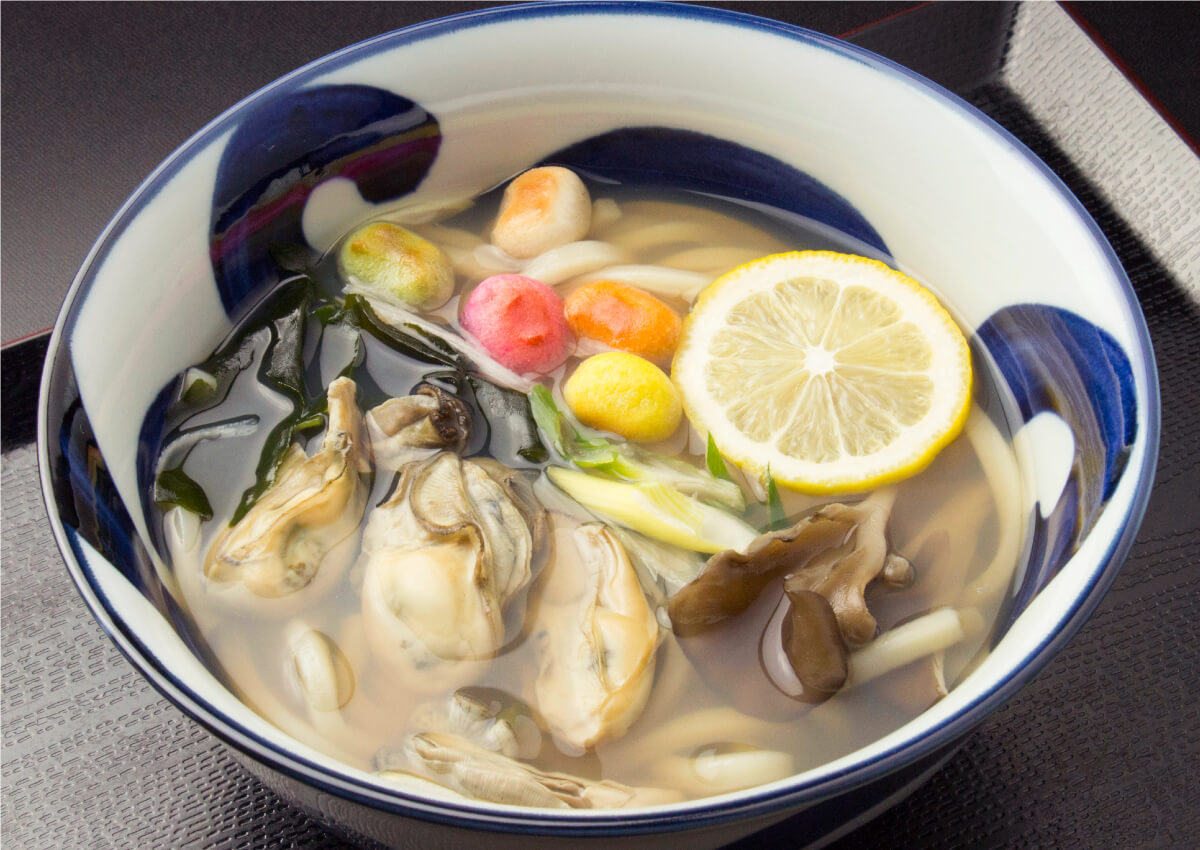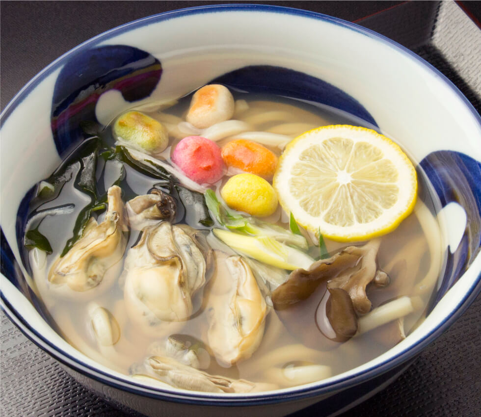 モチモチのうどんとプリプリ食感の牡蠣がゴロゴロ入っているので、食べ応えも十分!