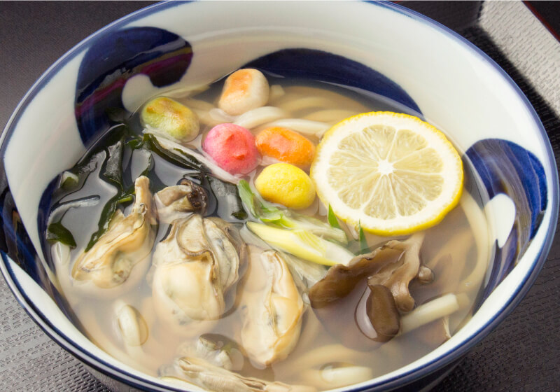 モチモチのうどんとプリプリ食感の牡蠣がゴロゴロ入っているので、食べ応えも十分!