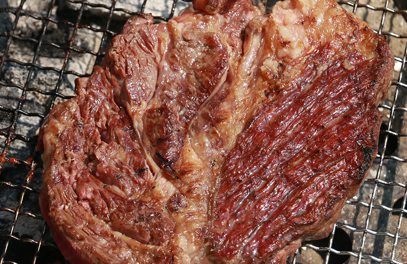 旨味を炭火でギュッと閉じ込んだぶ厚いステーキは、柔らかく、溢れ出る肉汁が食欲をそそります!