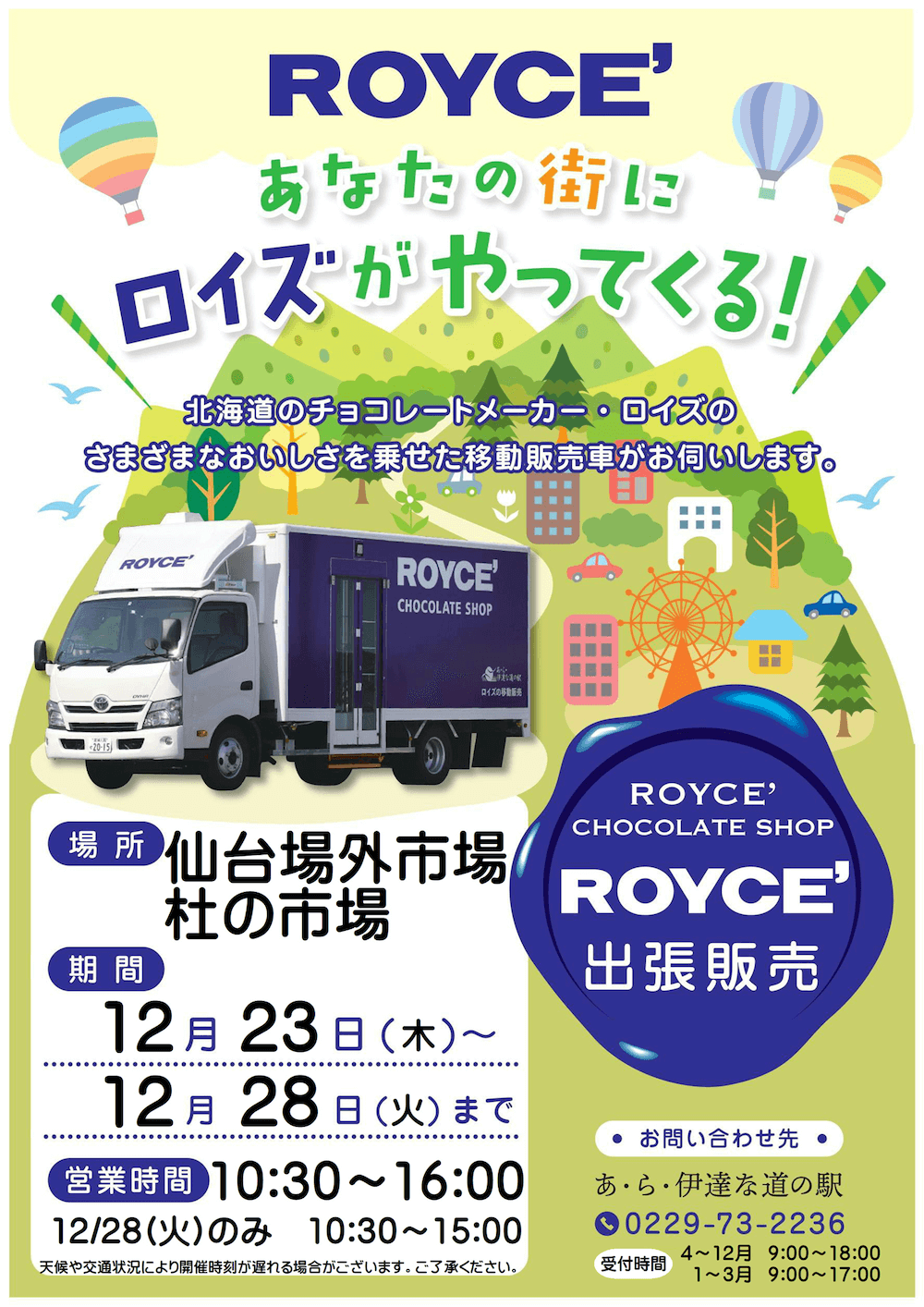 12月23日より、北海道の人気のチョコレートメーカー『ROYCE’』の移動販売車が
