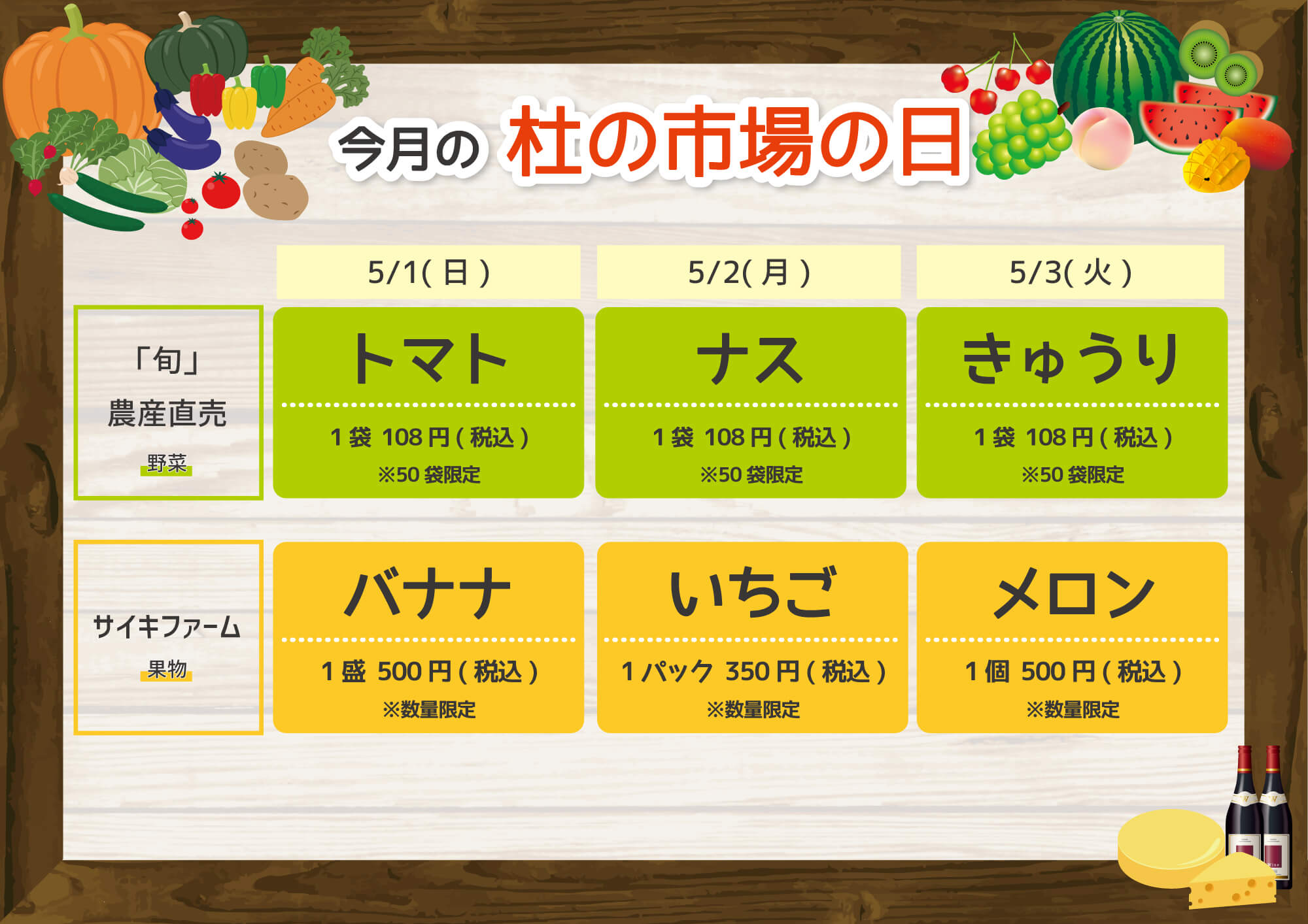 5月1日(日)〜5月3日(火)の3日間、「杜の市場の日」を開催いたします!