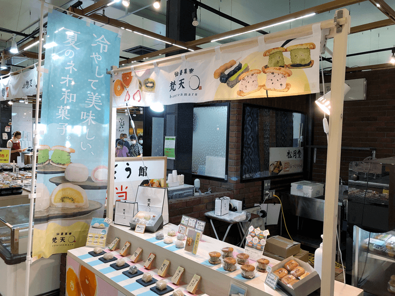 「これまでにない新感覚の和菓子・ネオ和菓子を仙台から」をコンセプトにした和菓子店、“仙台菓寮 梵天〇(ぼんてんまる)”が、期間限定で杜の市場内に出店いたします。
