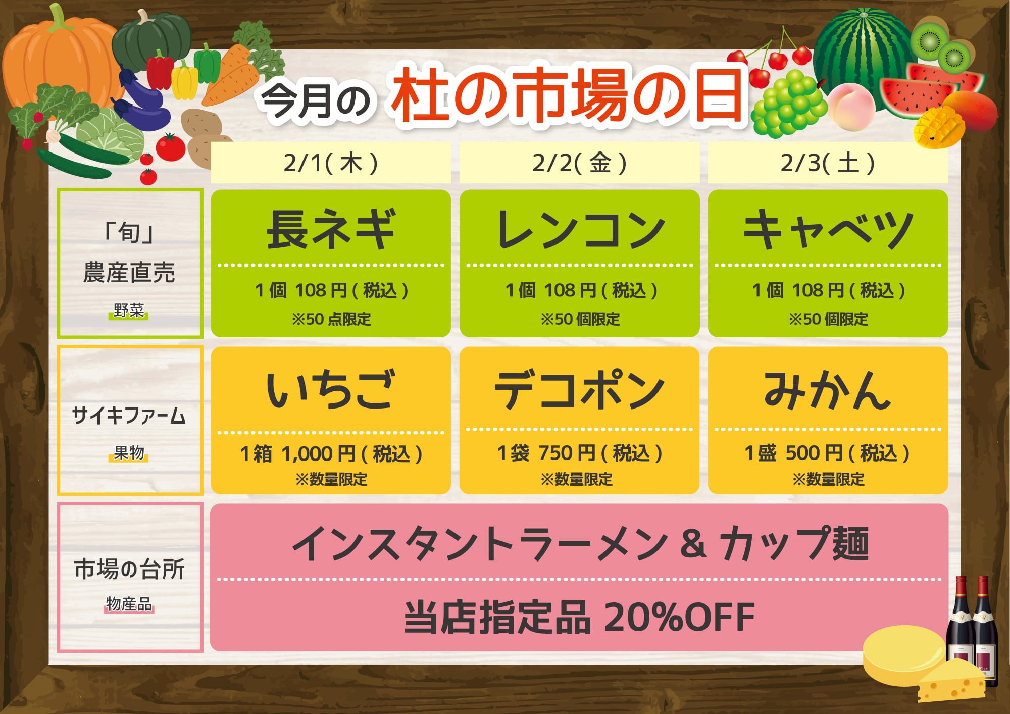 2月1日(木)〜2月3日(土)の3日間、「杜の市場の日」を開催いたします!