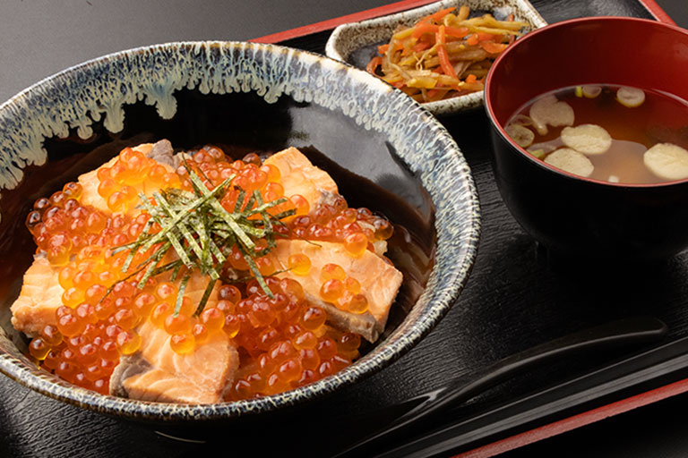 香ばしい醤油の香りと、イクラのプチっと弾ける口当たり・ふっくら食感の鮭がたまらない、宮城の秋の風物詩です。