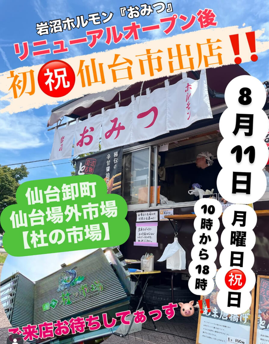岩沼ホルモン『おみつ』キッチンカー出店のお知らせ <2025/8/11(月)>