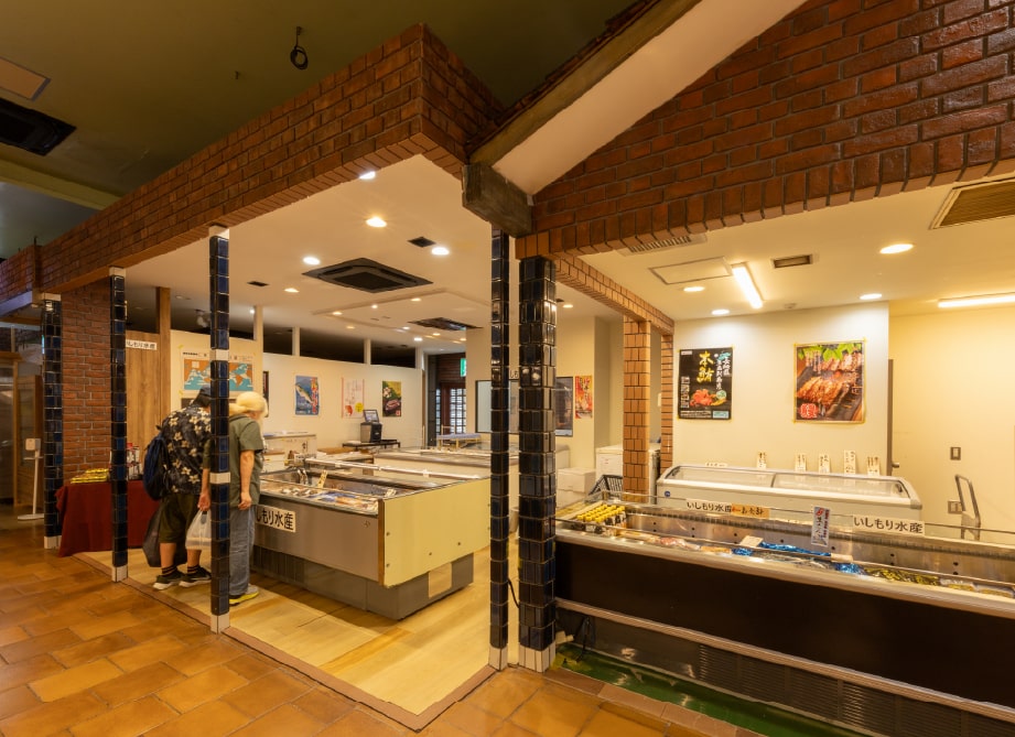 魚を知り尽くした職人が、日々仕入れた新鮮なお魚を、お刺身や炙り、干物などに美味しく加工・調理し販売しています。