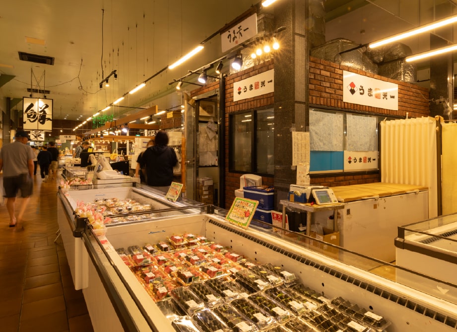 杜の市場内の鮮魚店「海宏」が、鮮度・品質にこだわり、素材の良さを活かしたお寿司をご提供する「うま天一」。